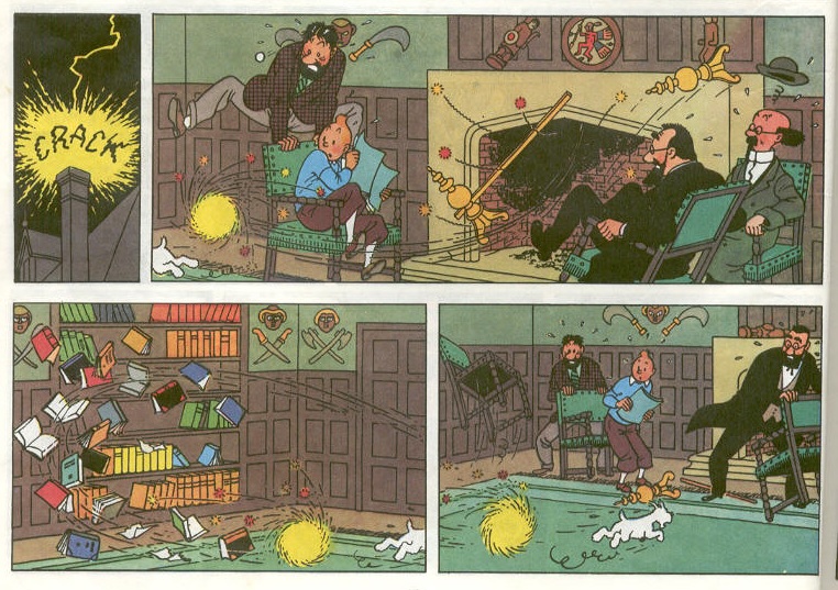 The ball lightning scene in “Tintin and The Seven Crystal Balls”, showing the similarity to the Luplau Janssen incident