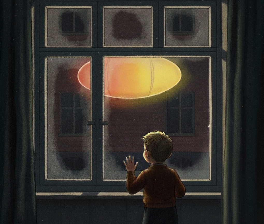 However, the object did eventually emerge, and this time it crossed the street and ascended to a stop right outside his bedroom window. The light was now slightly red on the left, and yellow on the right side of the object, while its center stayed orange in color. GK could not explain why, but he got the feeling that it was watching him and that it was curious about him, despite the object not having any defining features such as holes or windows. GK was not afraid of the UFO, he only felt a bit strange.